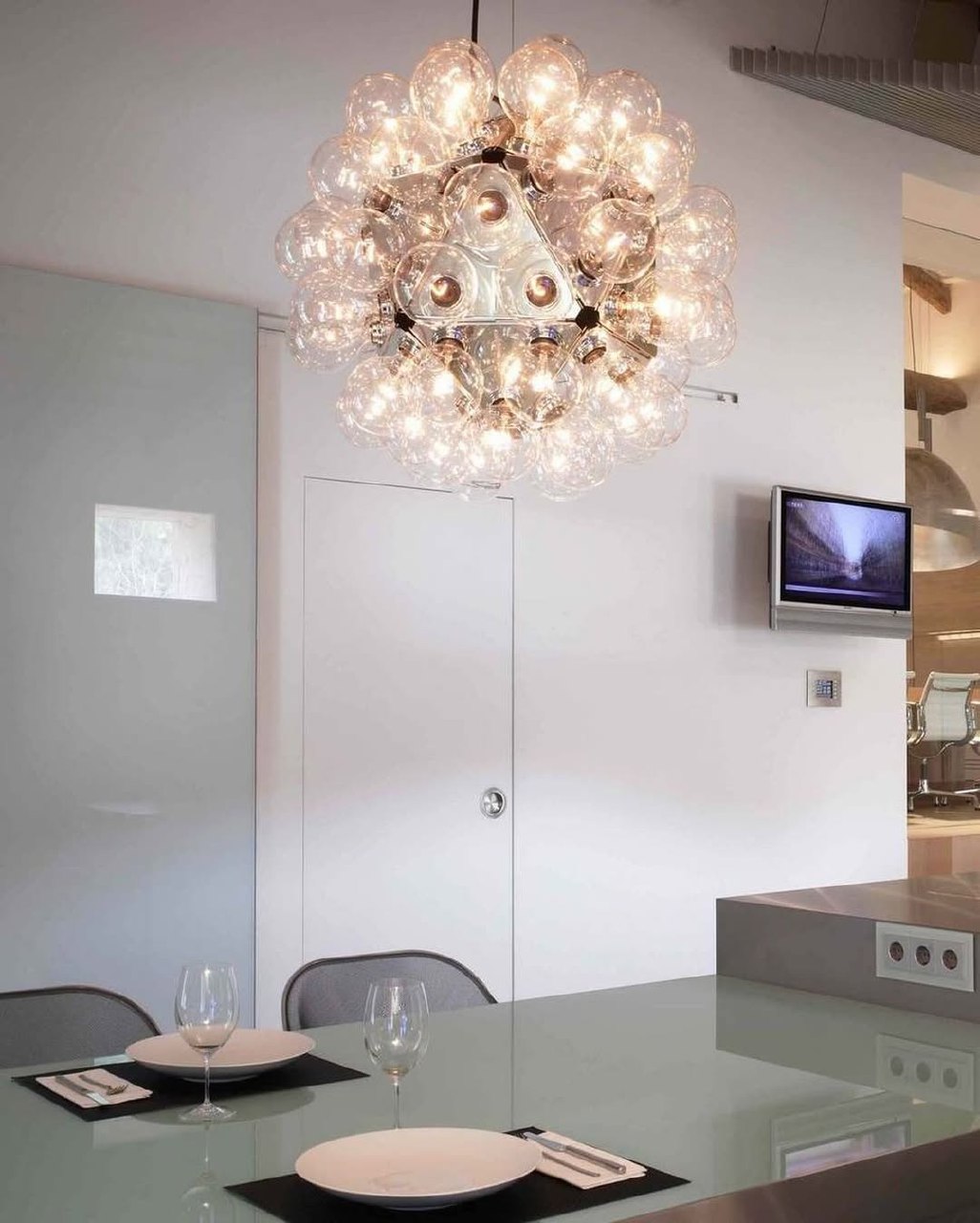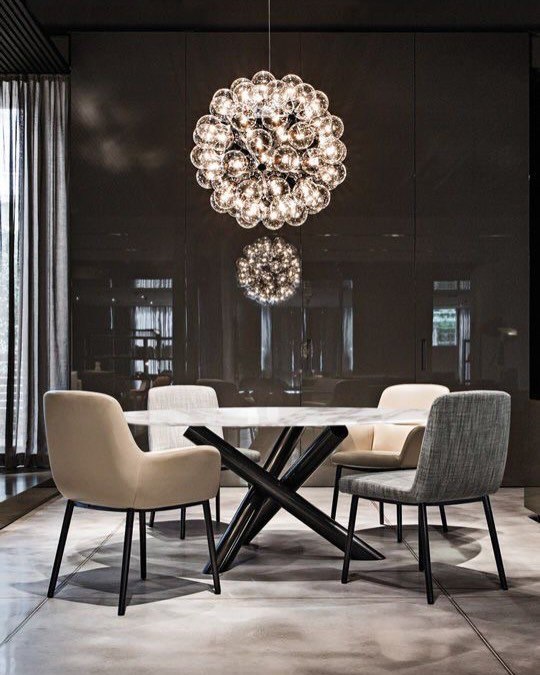 Создаёт мягкое, объёмное освещение и ощущение воздушности. Идеально подходит для гостиной, столовой или современного интерьера с акцентом на стиль и свет.