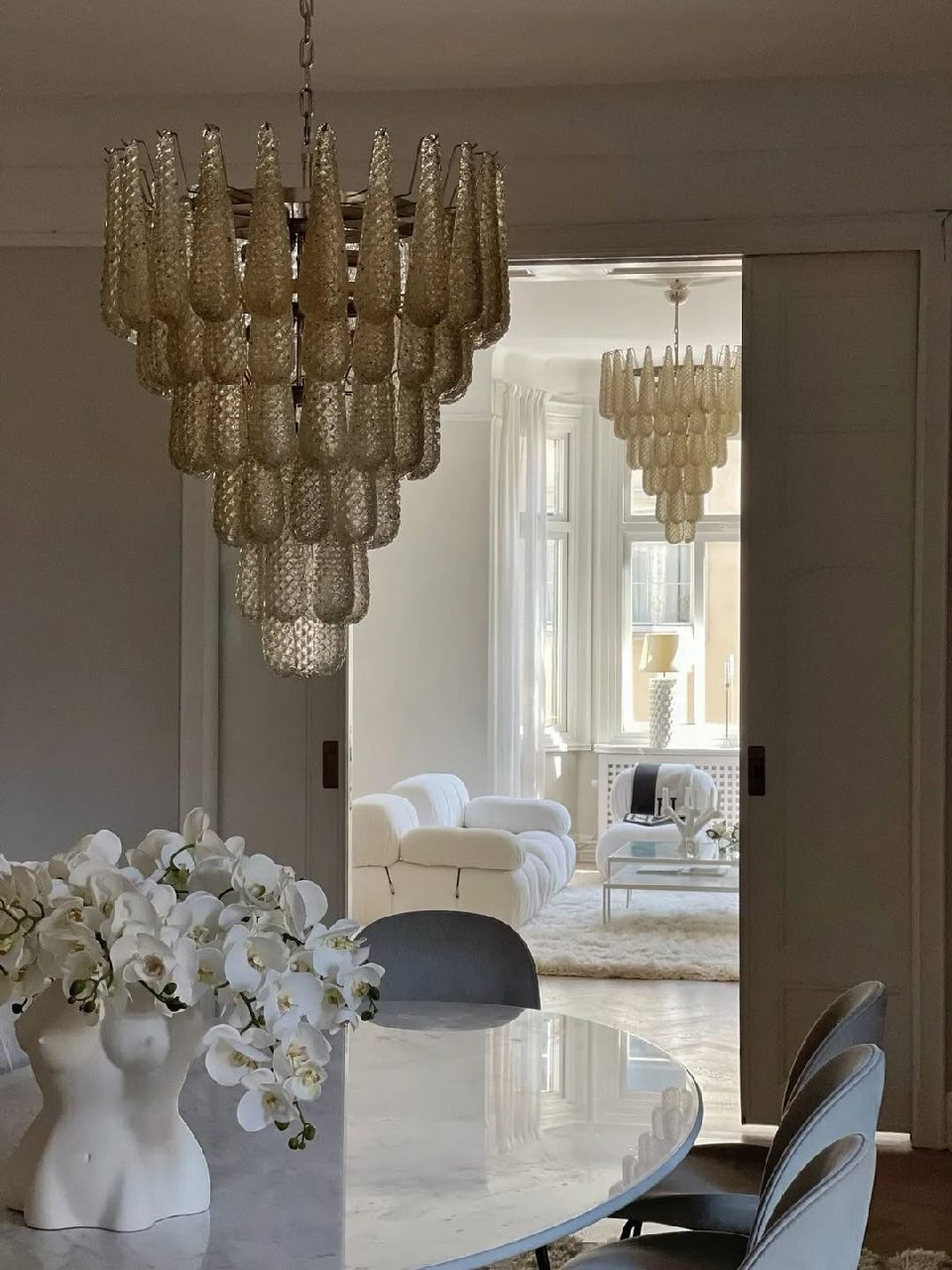 Жұмсақ, жылы жарқырау текстуралы шыныдан әдемі шағылысып, жайлылық пен әсемдік атмосферасын жасайды. Ерекше интерьерге тамаша екпін.