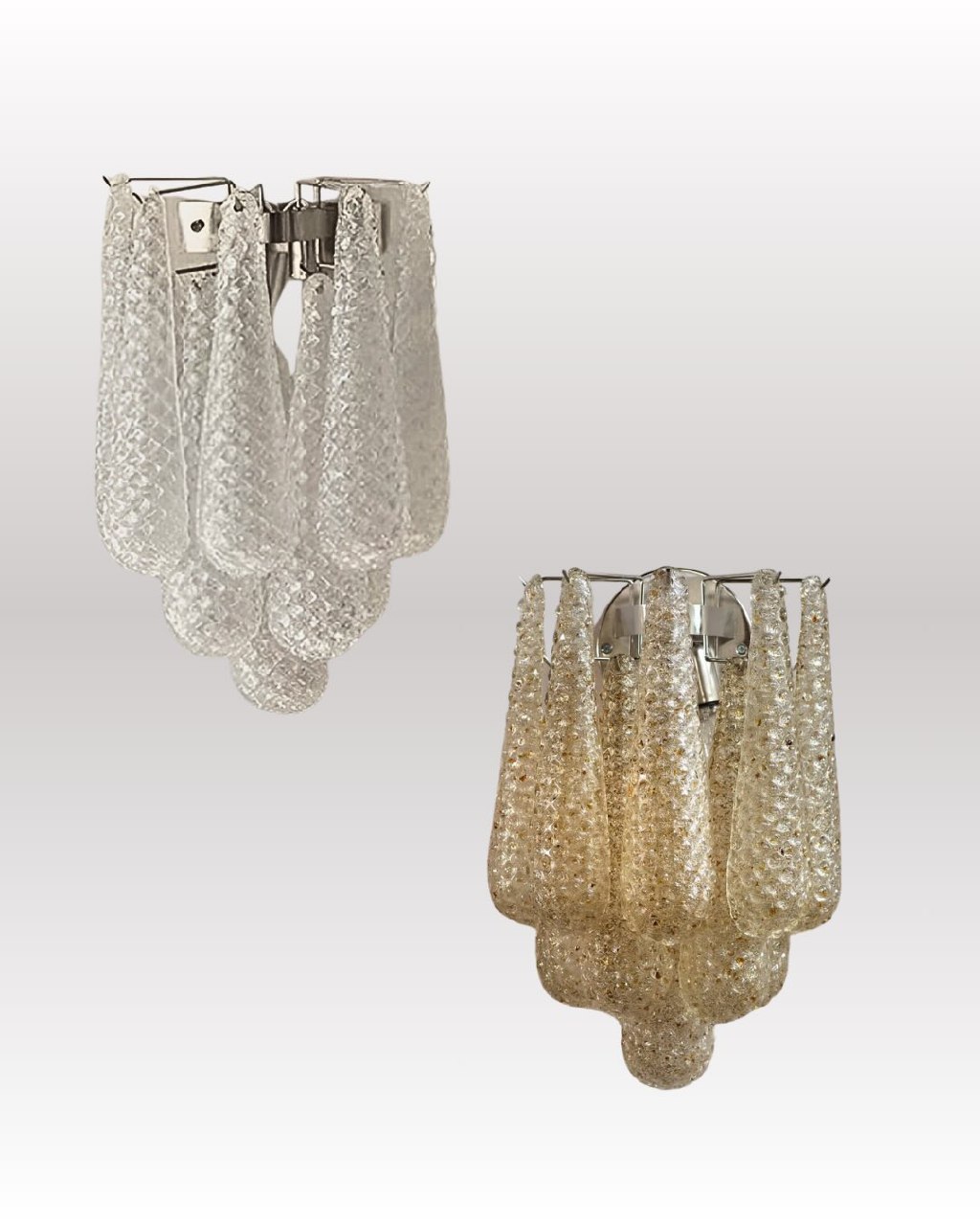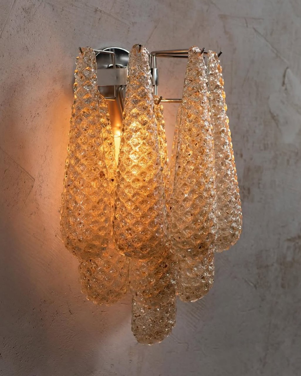 Венециялық әсем қабырға шамы екі түсті: алтын және күміс. Керемет әйнек құрылымы жарықты әдемі шашыратып, жұмсақ және жайлы атмосфера жасайды.