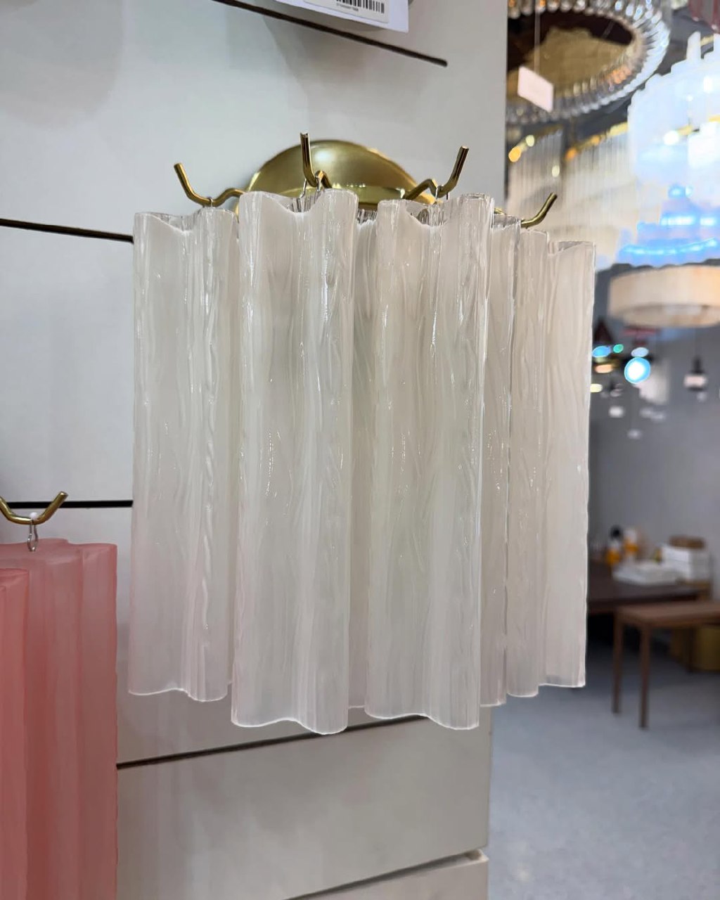 Жарықты жұмсақ шашыратып, жайлы атмосфера жасайтын текстуралы әйнегі бар әсем қабырға шамы. Қабырғалы реңктер мәнерлілік қосады, ал металл негізі стильді екпін қосады.