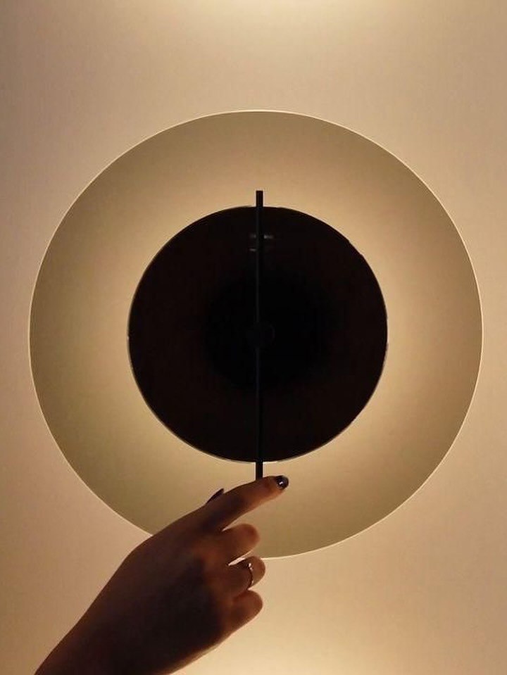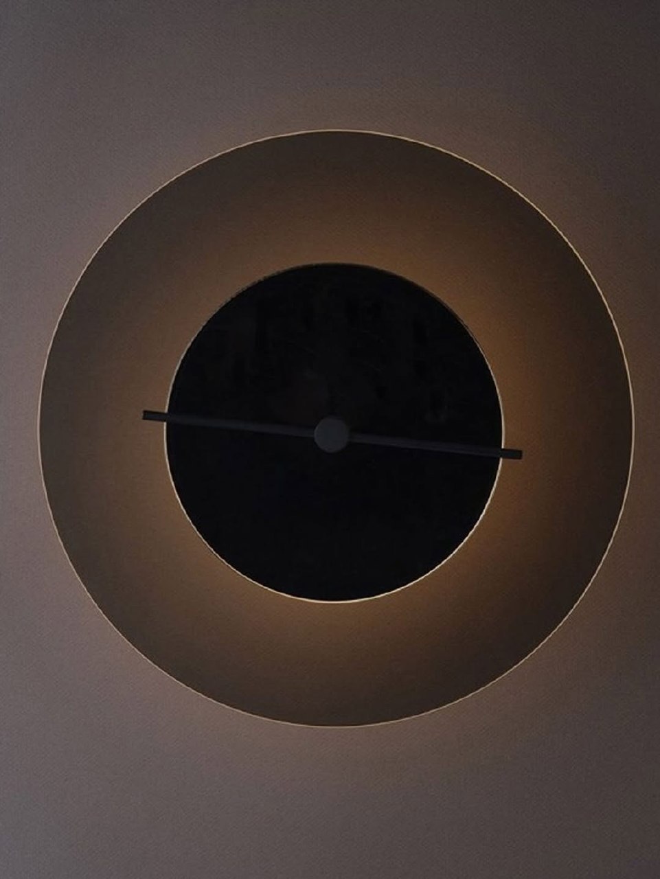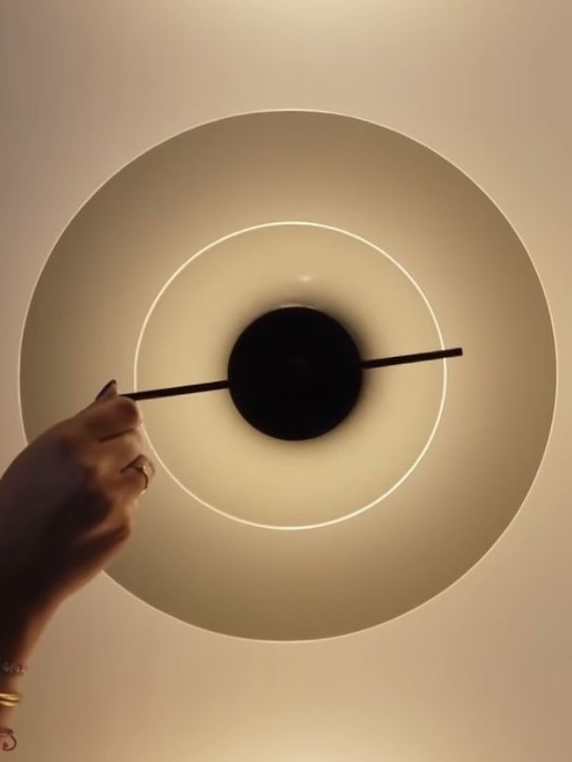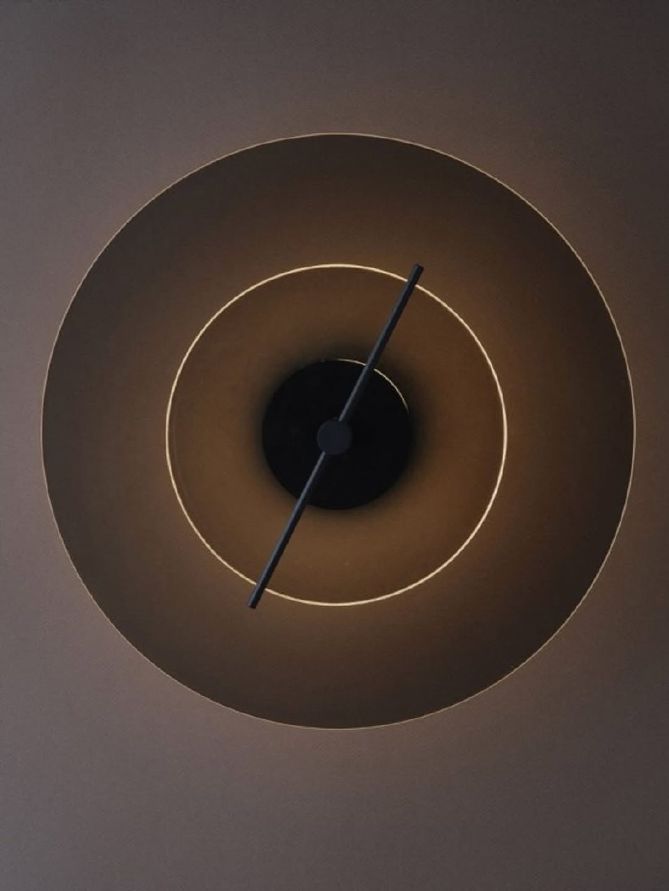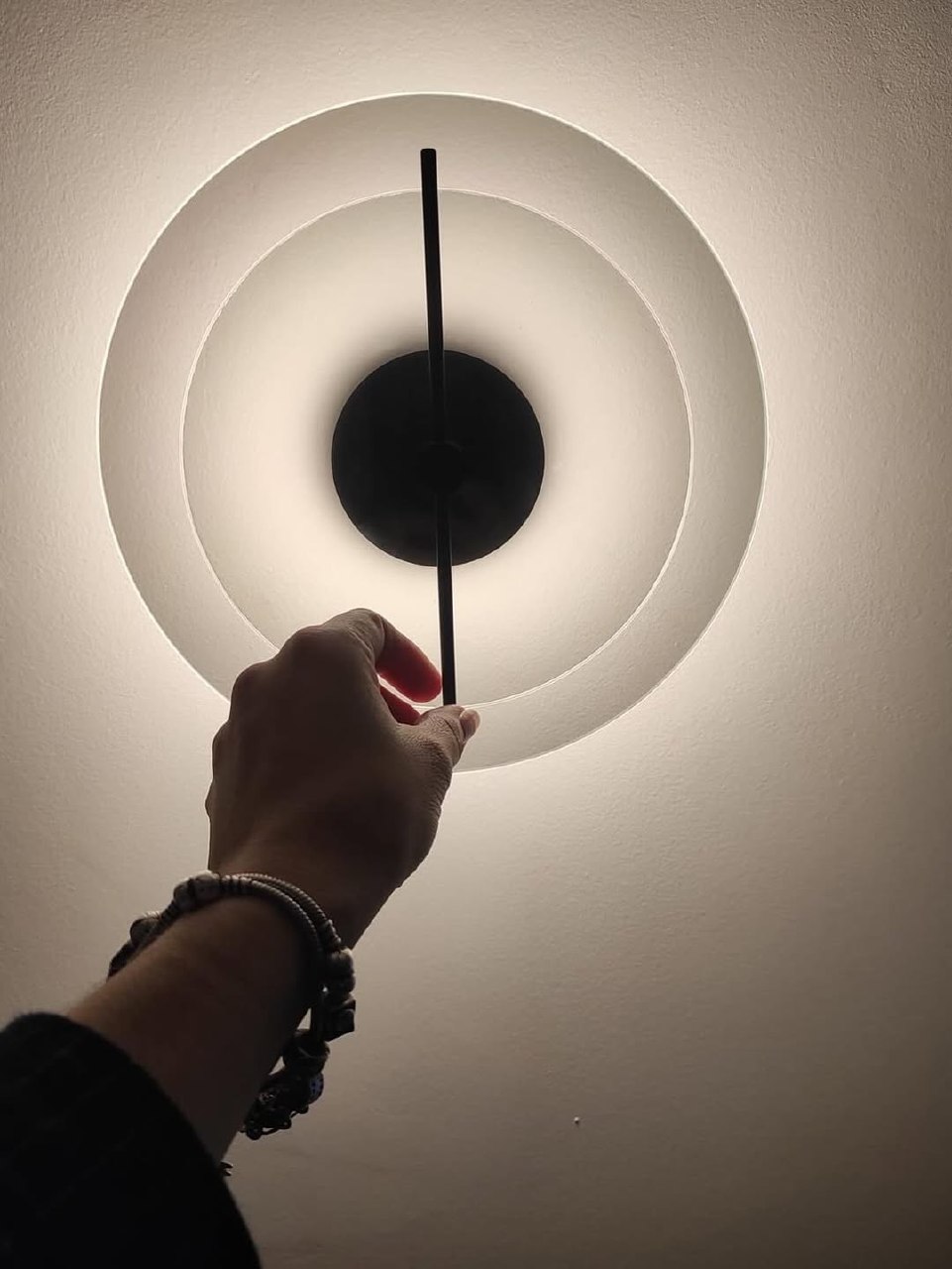 Чёрная основа и концентрические кольца создают эффект объемного свечения и стильный акцент на стене