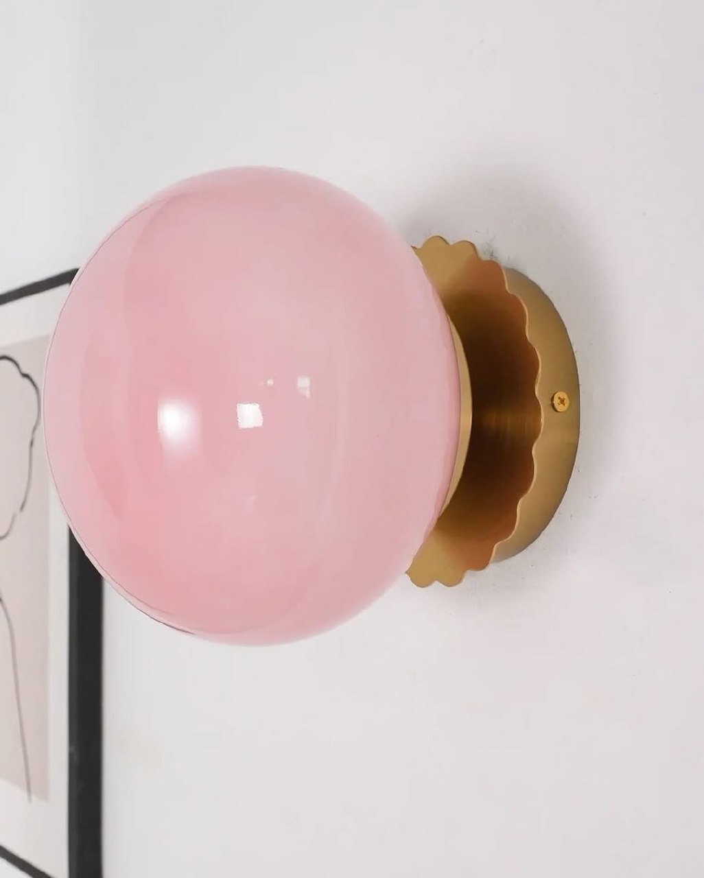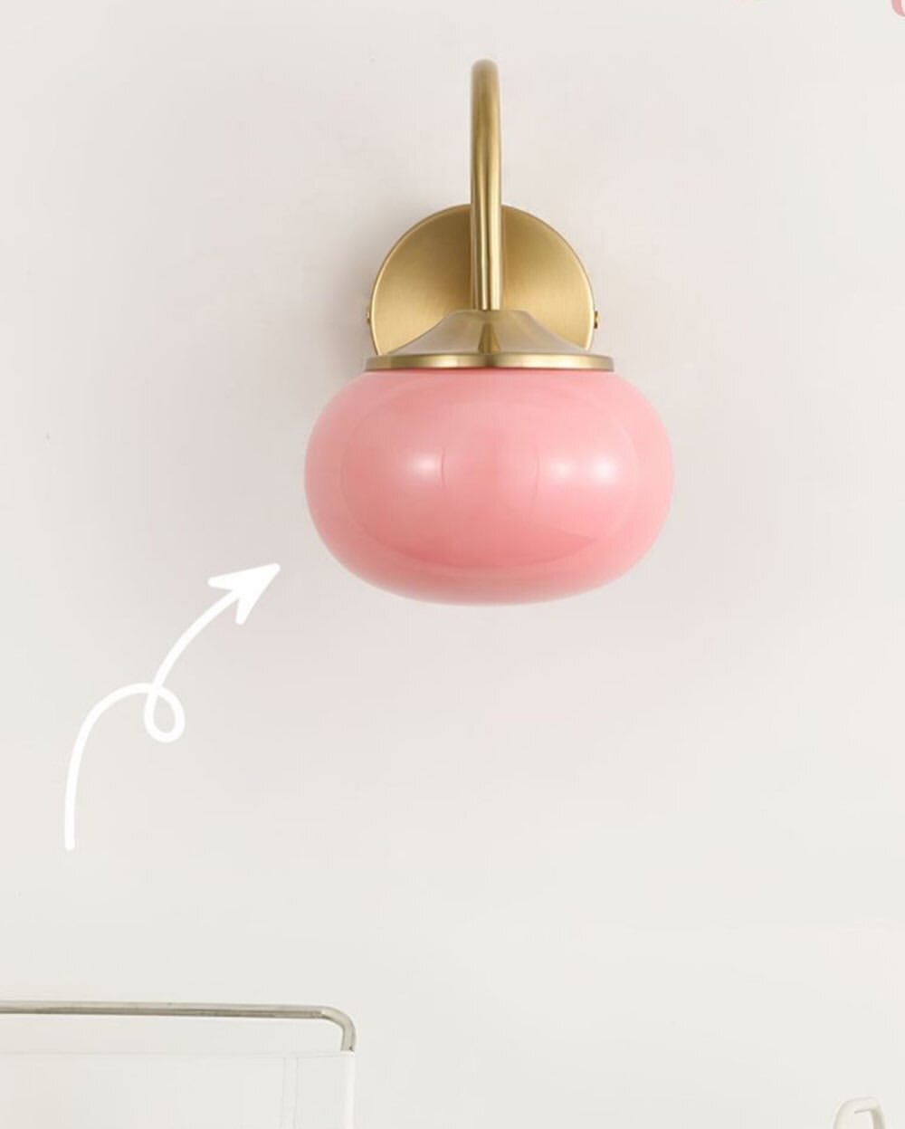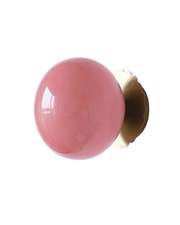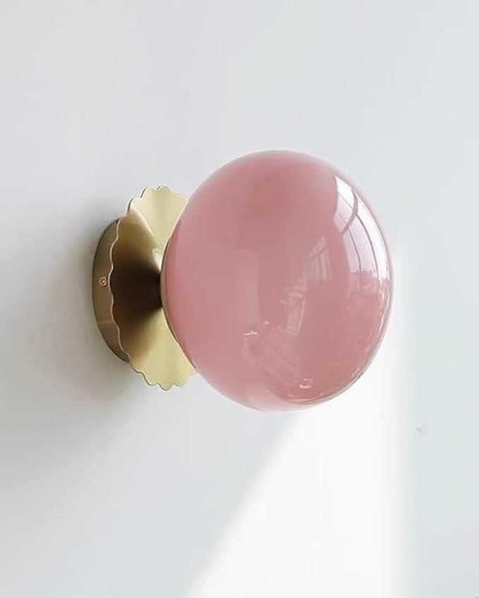 Настенные бра с розовыми шарообразными плафонами и золотым основанием