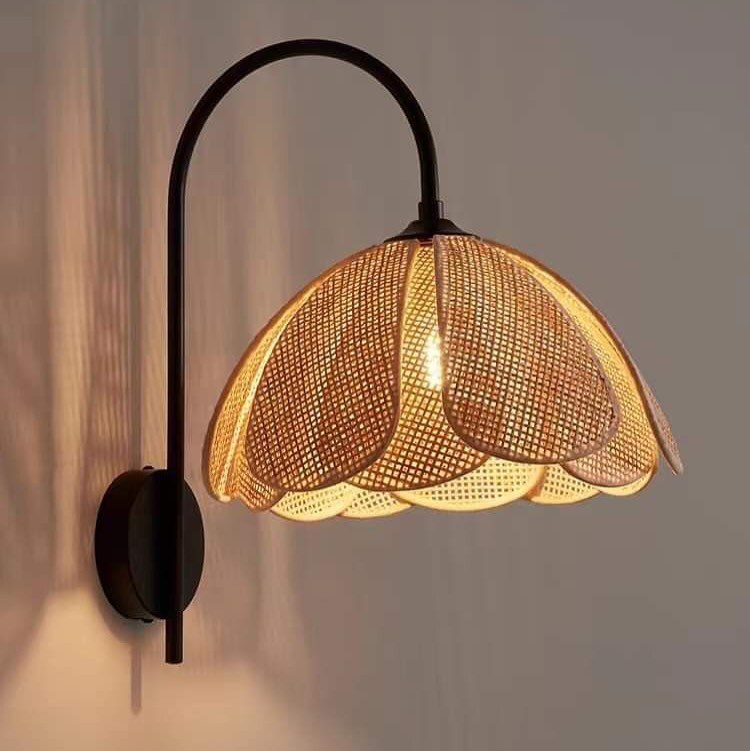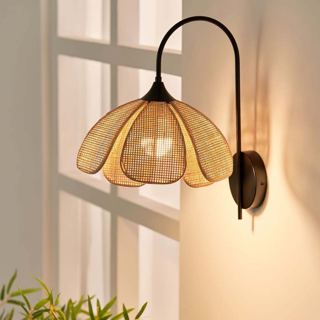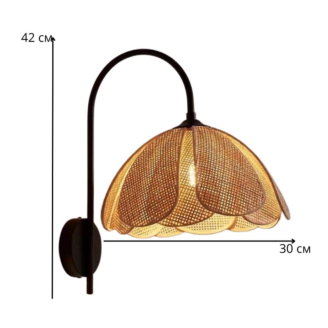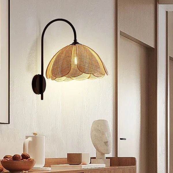 Настенный светильник с абажуром из ротанга создаёт мягкое тёплое освещение и уютную атмосферу.