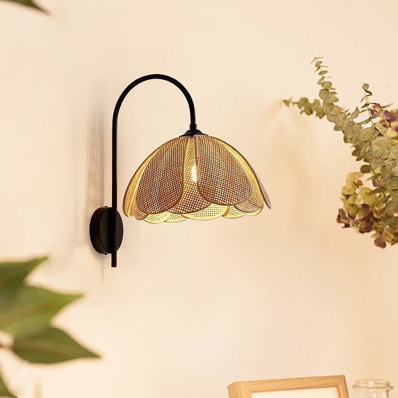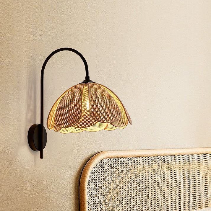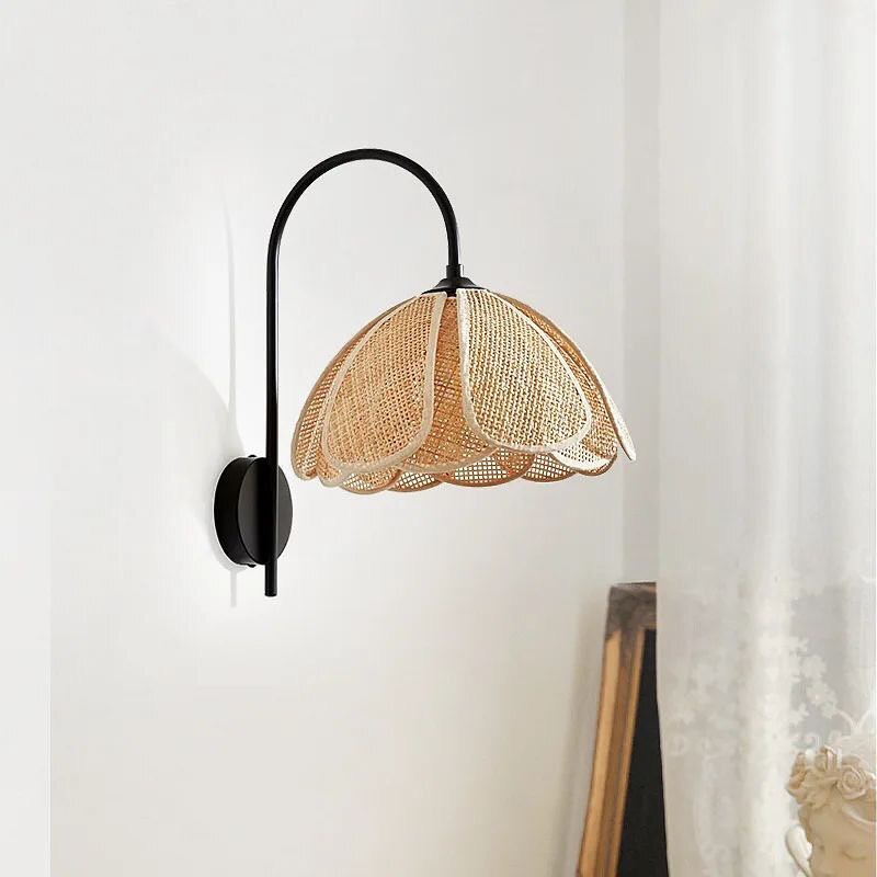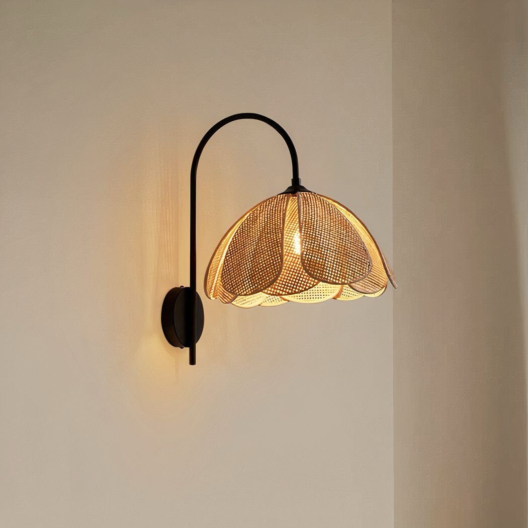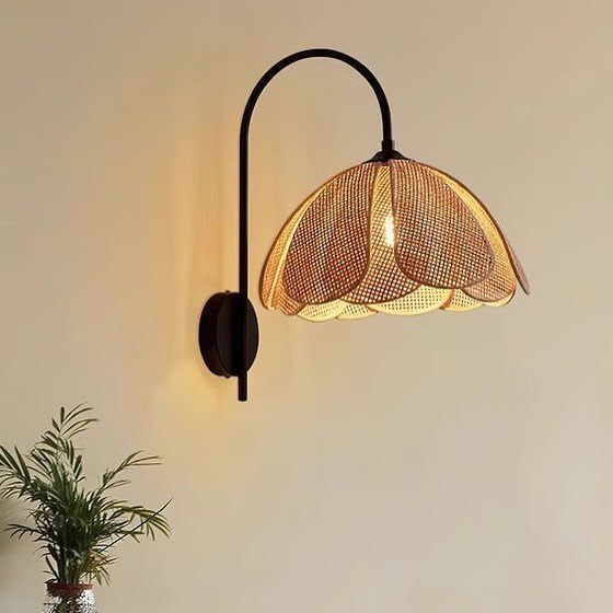 Настенный светильник с абажуром из ротанга создаёт мягкое тёплое освещение и уютную атмосферу.