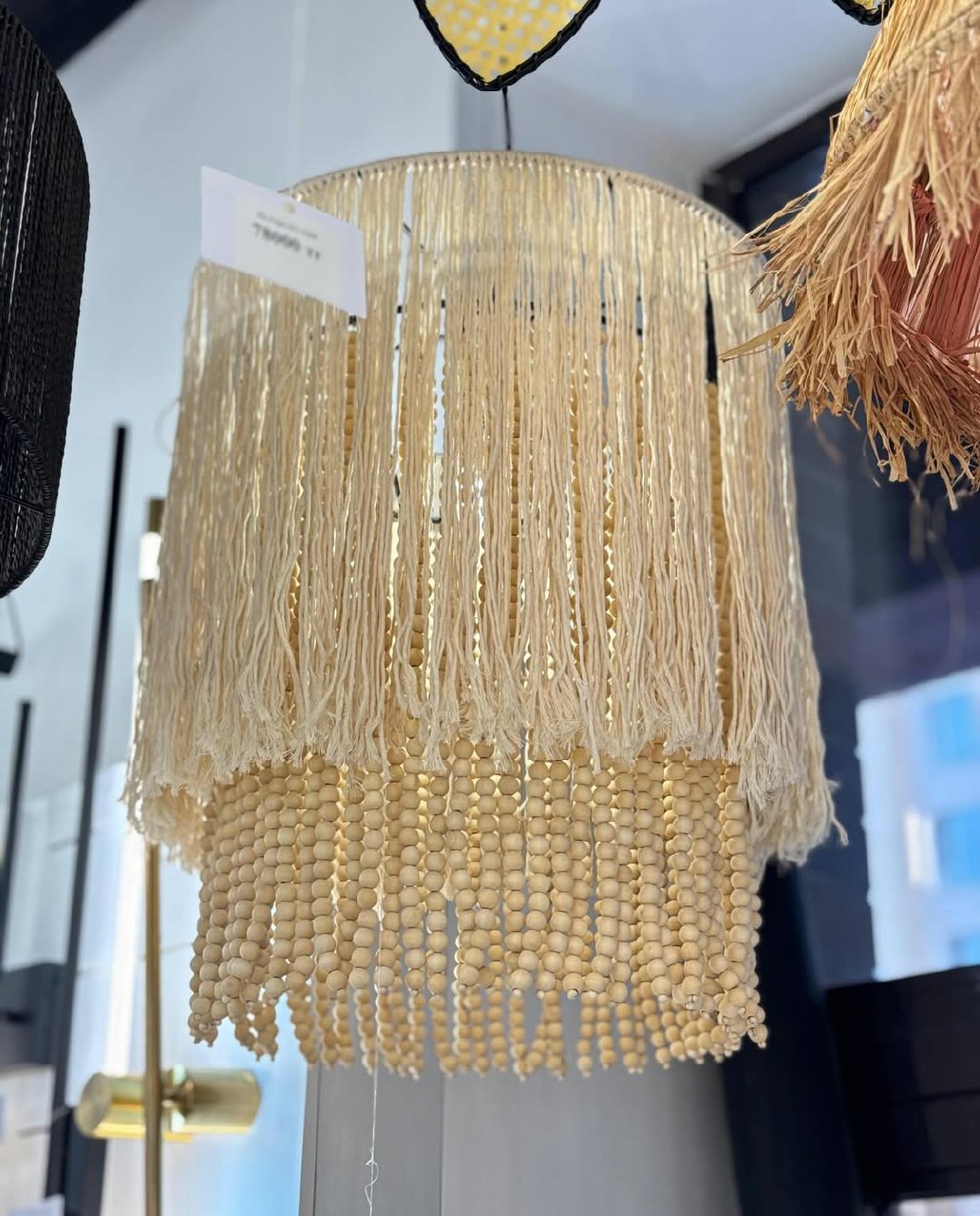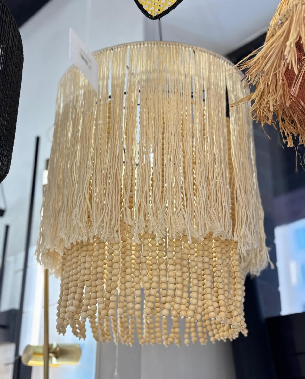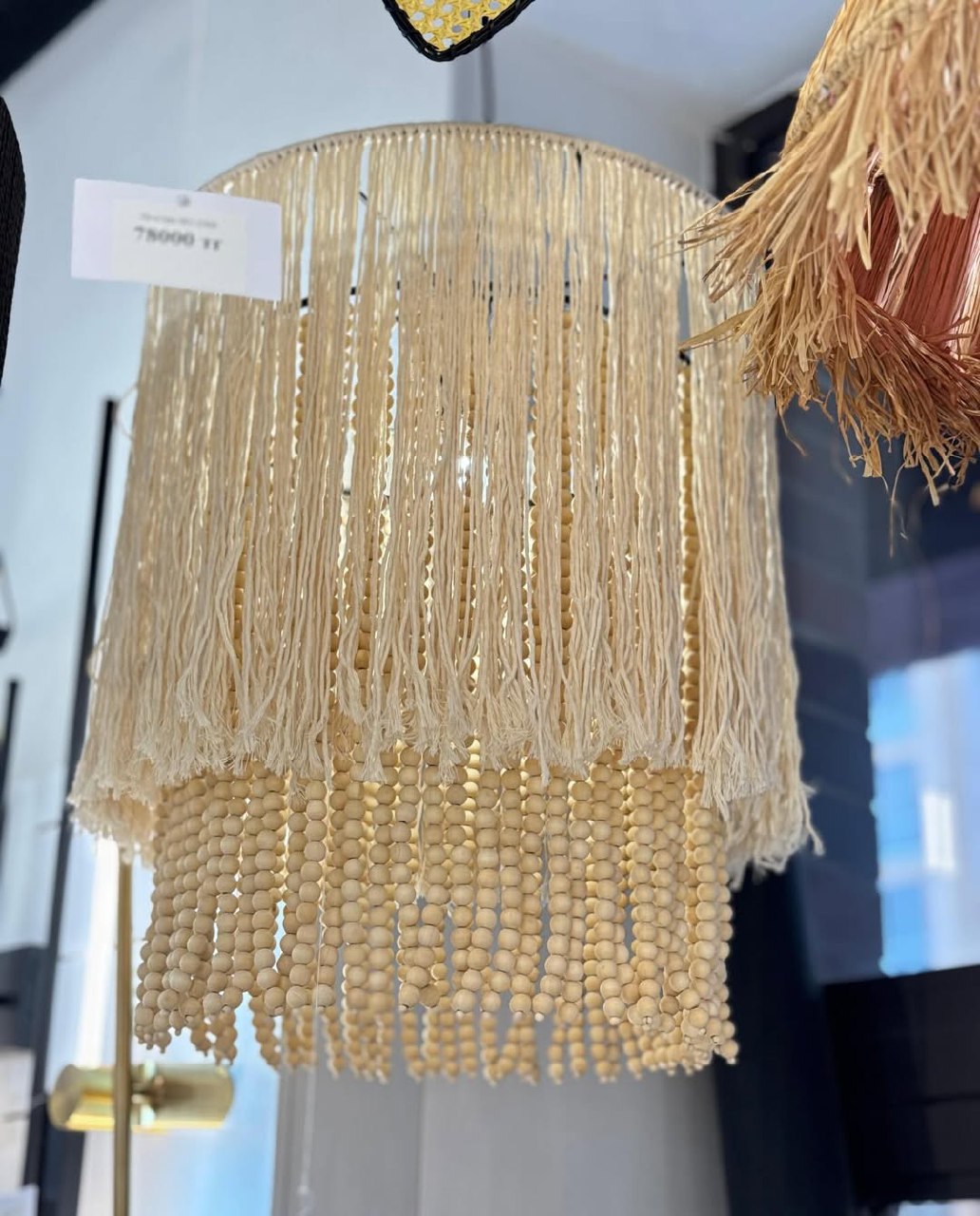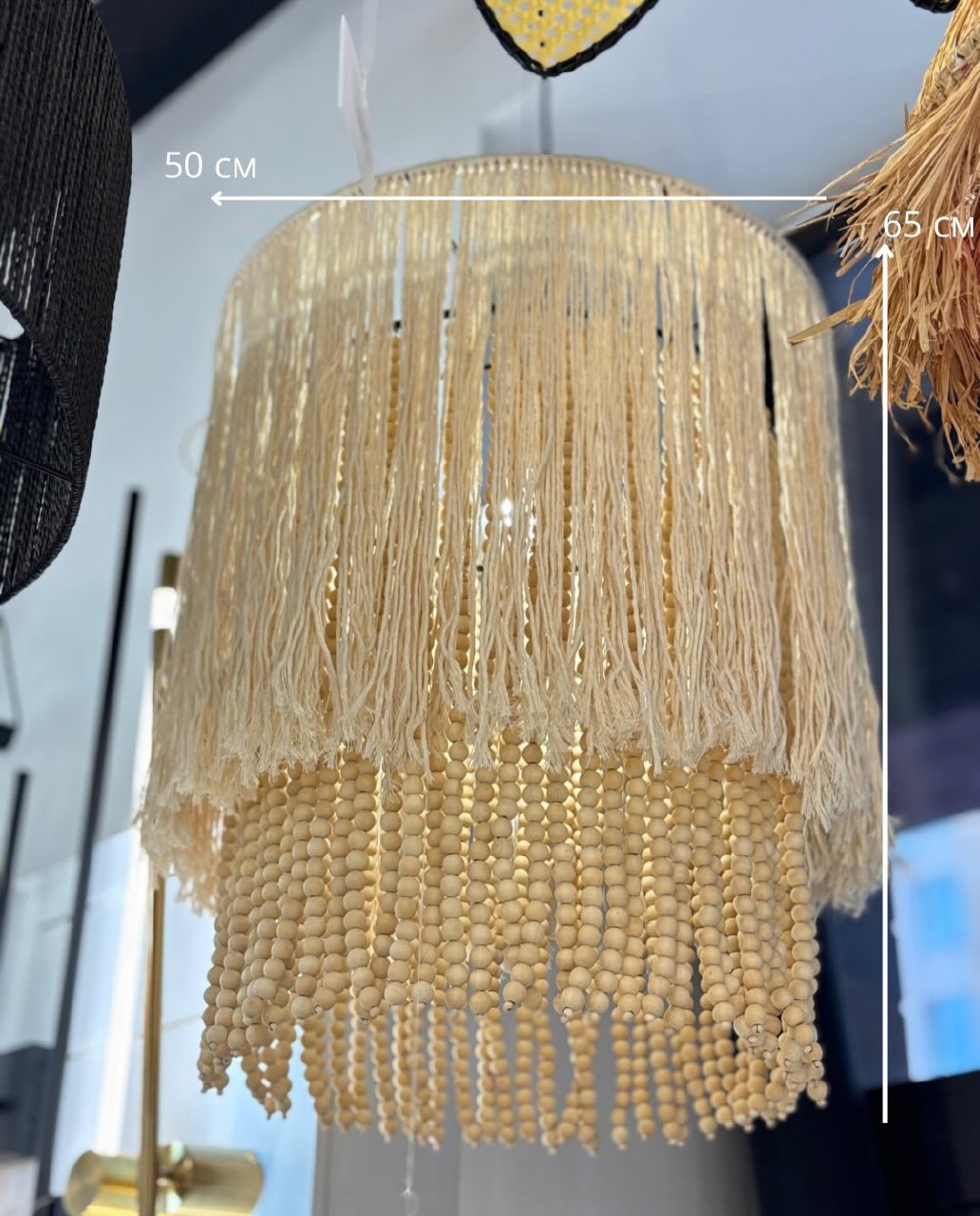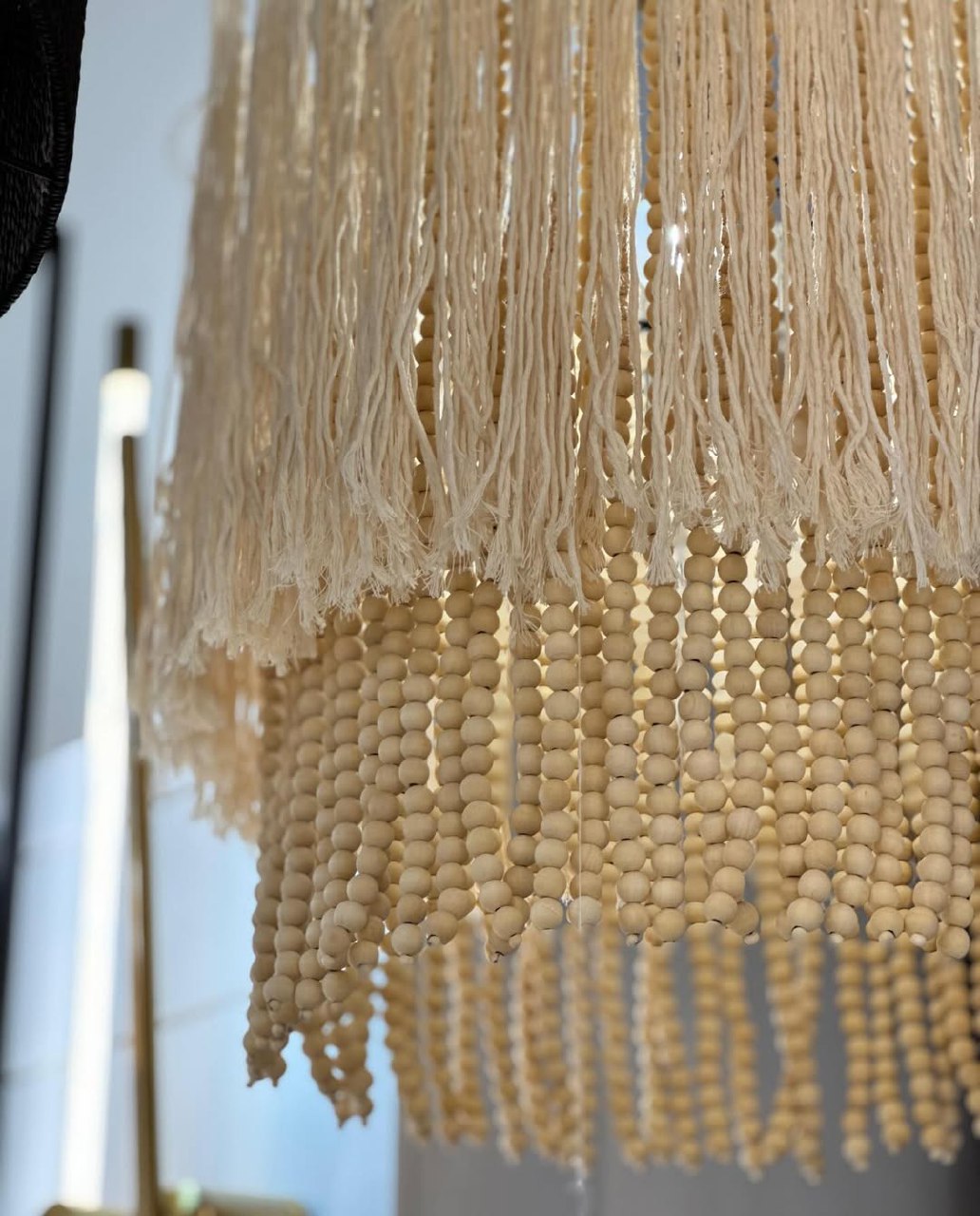 💡Материал абажурa -хлопковая веревка+деревянные бусины