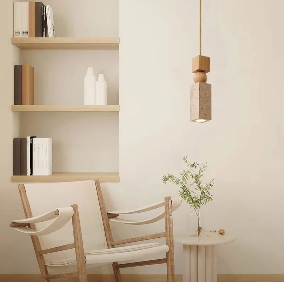 Сочетание натурального камня и дерева создаёт тёплый, спокойный свет и акцентную геометрию. Идеально подходят для кухни, обеденной зоны или прикроватного освещения.