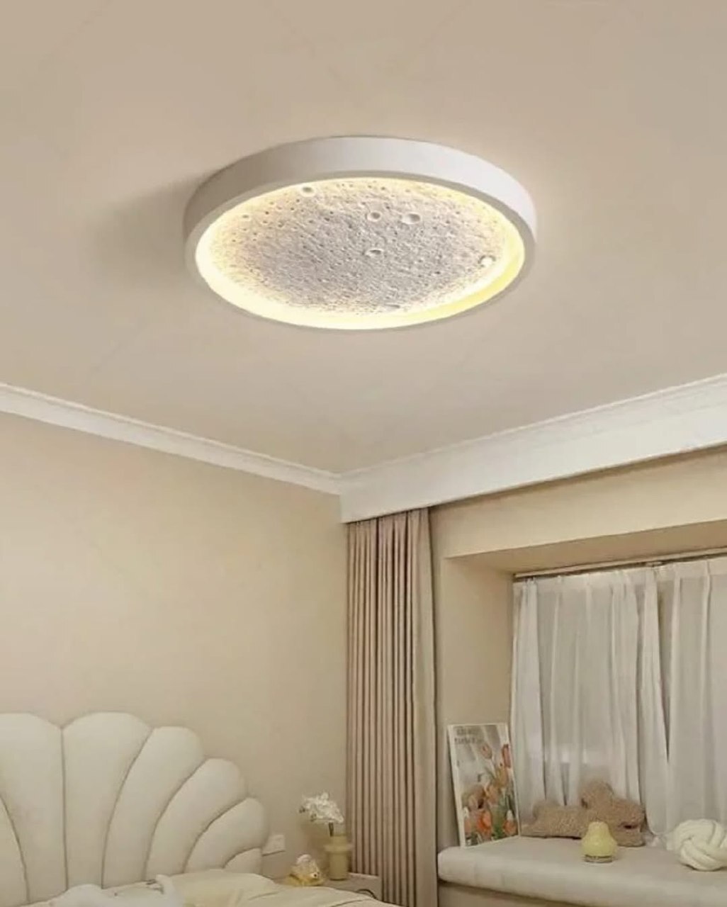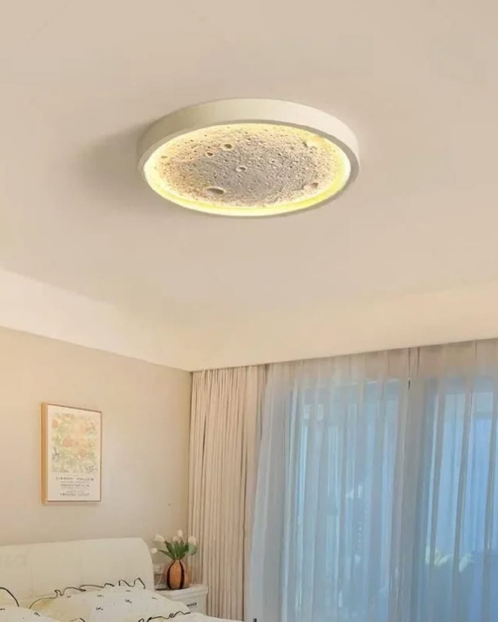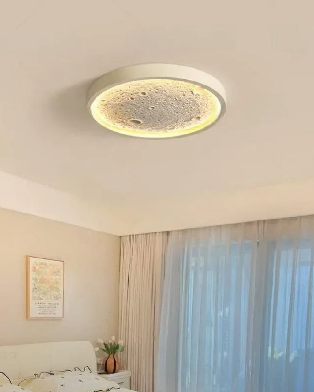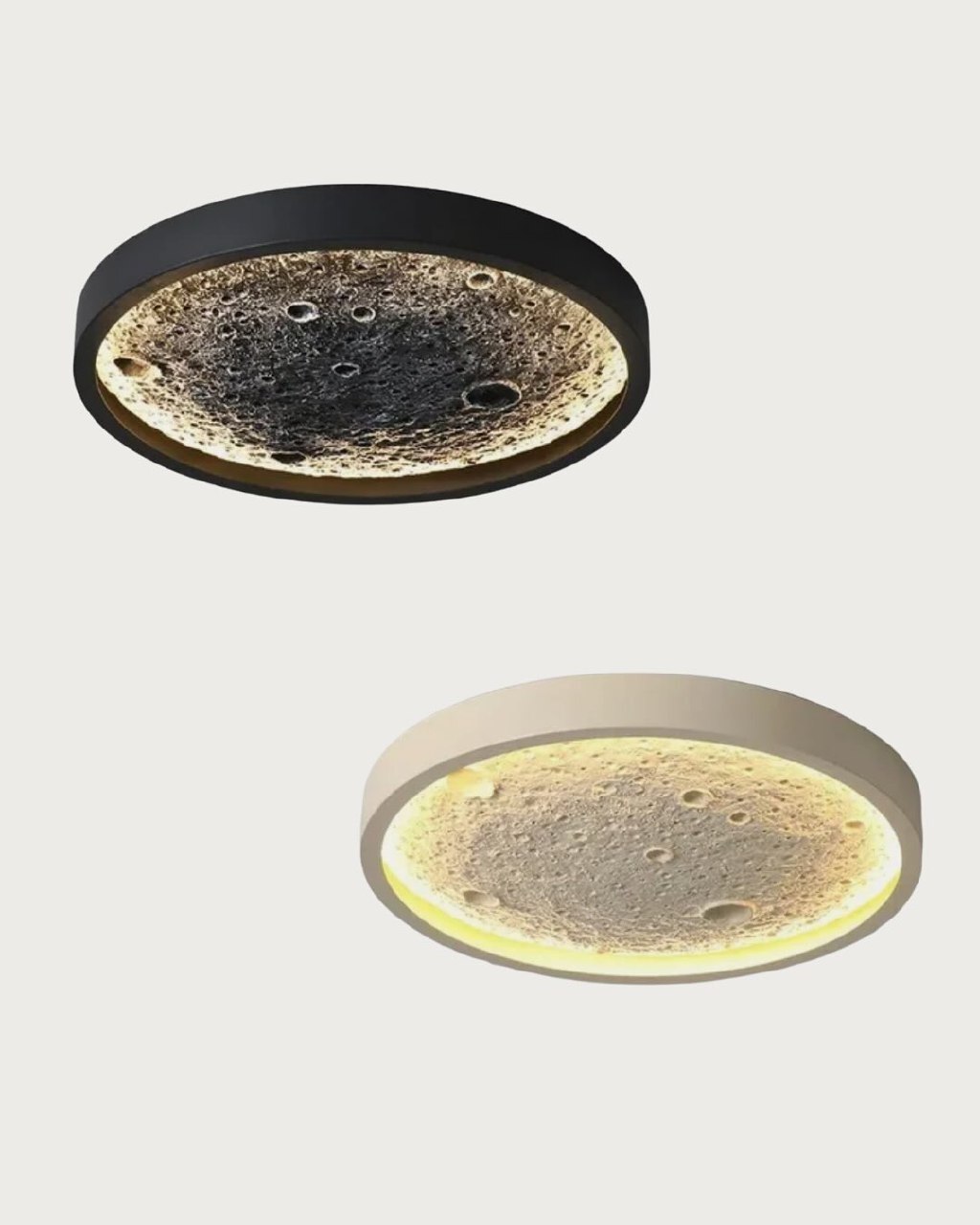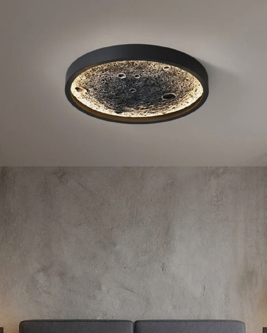 Эффектное освещение с текстурой кратеров создаёт атмосферу уюта и космической гармонии.